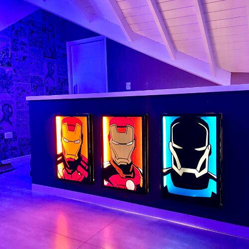 Diseñamos un universo completo donde los superhéroes cobran vida: paredes ploteadas, cuadros retroiluminados, texturas 3D y detalles que hacen sentir la acción.
